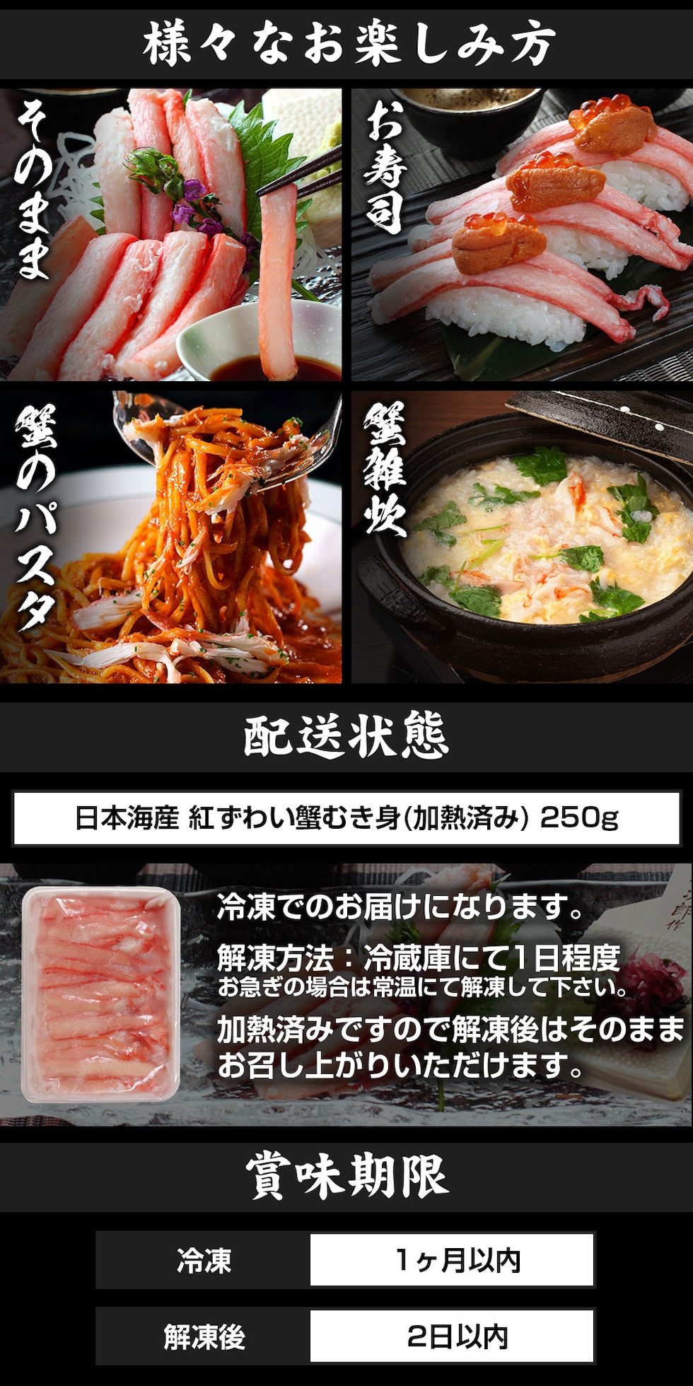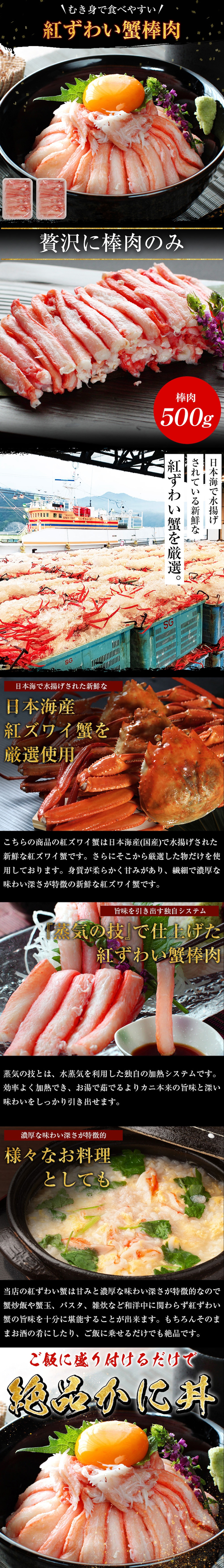 かに カニ 蟹 日本海産 紅ずわい棒肉 500g (250g×2パック) (加熱済み) むき身 グルメ 冷凍 ギフト 茹で蟹 紅ズワイガニ
