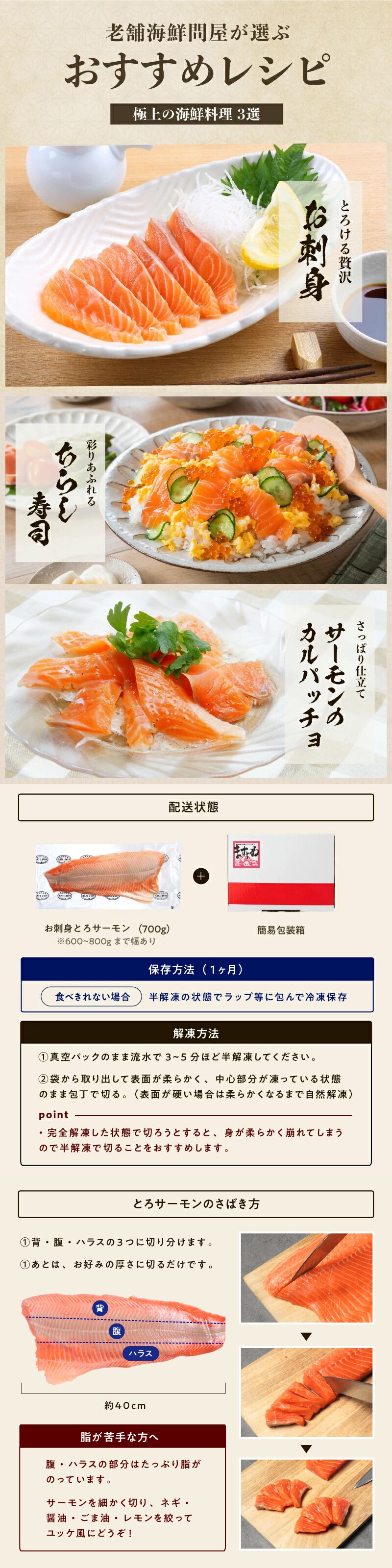 お刺身用 とろサーモン (半身フィレ) 700g前後 骨無し&皮無し ※生食用/冷凍 さーもん サーモン トラウト 刺身 お取り寄せ 業務用 冷凍