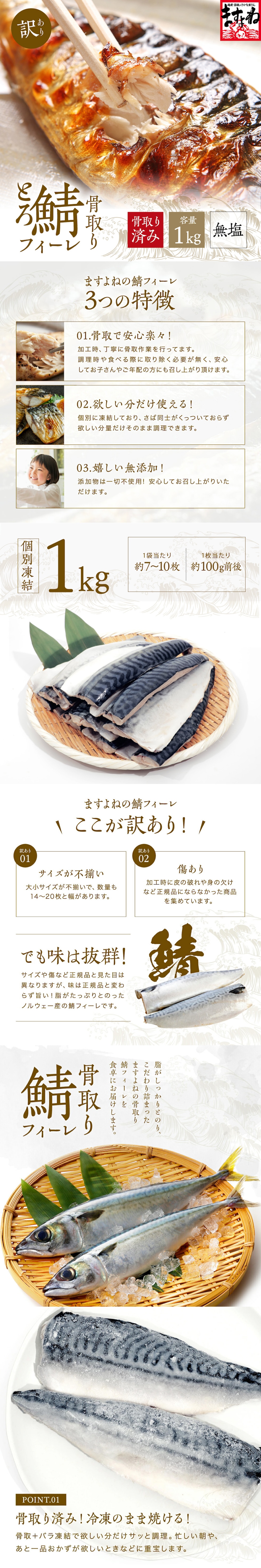 骨取り鯖フィーレ 1kg 冷凍【原産地】