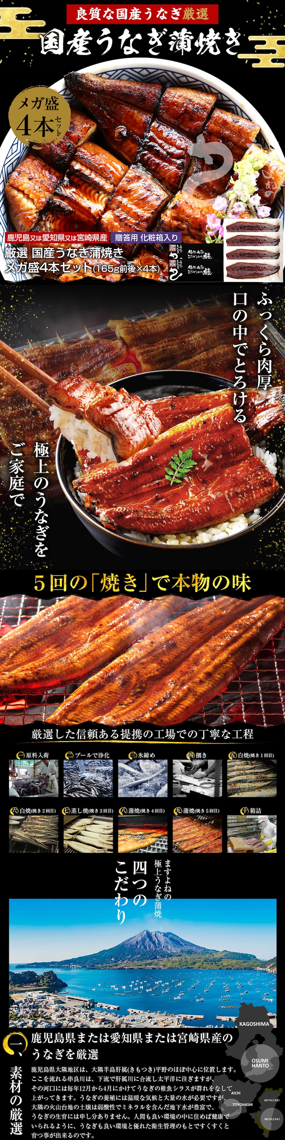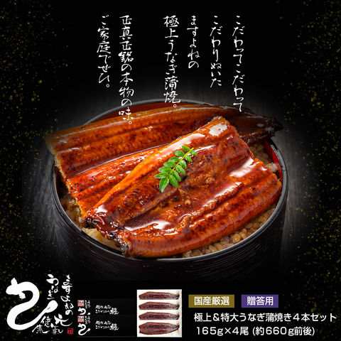 うなぎ 鰻 国産 丑の日 ギフト うなぎ蒲焼き 165g前後×4本セット 計660g前後 タレ・山椒付き うなぎ ウナギ 鰻 蒲焼き 国産 ギフト プレゼント お中元 お歳暮 お取り寄せ 送料無料 ますよね 【熨斗対応OK】