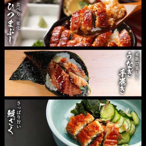 うなぎ蒲焼き(鹿児島県産 又は 愛知県産 又は 宮崎県産):しょうゆ、ぶどう糖果糖液糖、発酵調味料、みりん、砂糖、水あめ、着色料(カラメル・アナトー)、増粘剤(加工澱粉、増粘多糖類)、調味料(アミノ酸等)、(原材料の一部に小麦、大豆を含む)【賞味期限】