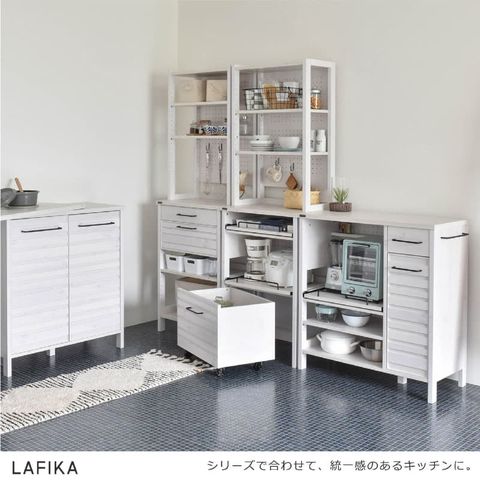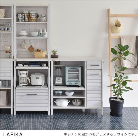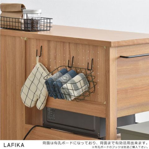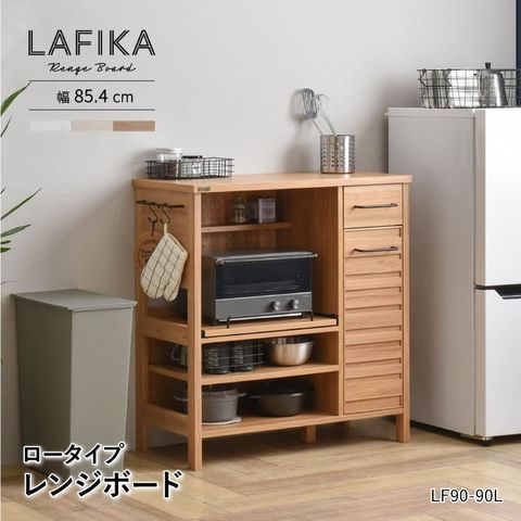 ラフィカ LAFIKA レンジボード 85cm幅 ロータイプ スライド棚 レンジ台 キャビネット 引出し 可動棚 食器棚 組立品 有孔ボード キッチンボード 電子レンジ レンジ キッチン ラック シンプル おしゃれ 北欧 リビング 収納 ストック収納 LF90-90L 佐藤産業 SS MT
