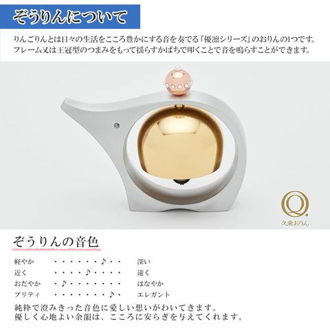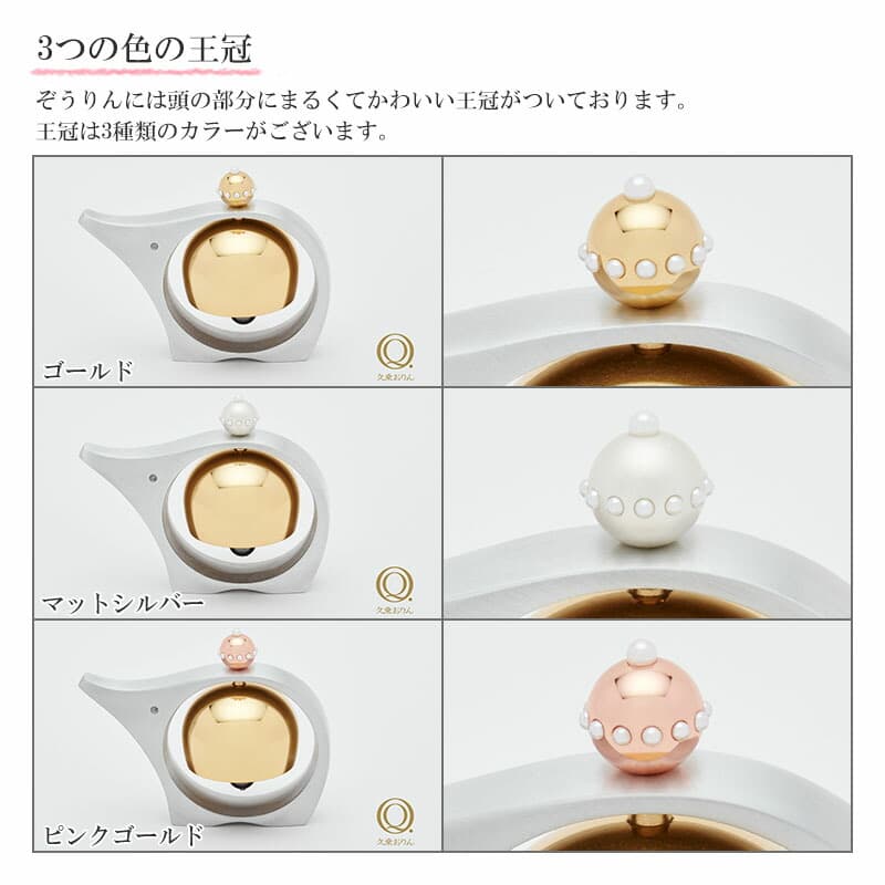 ぞうの形をしたかわいいおりんで頭にまるい王冠をつけています。