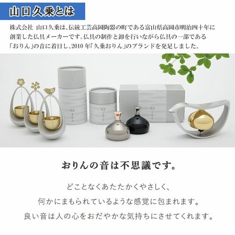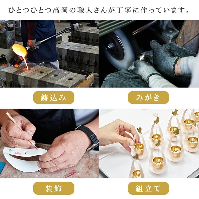 | 素材 | おりん:銅合金 フレーム:アルミニウム 飾:ビーズ 王冠:真鍮(カラー/ゴールド、マットシルバー、ピンクゴールド) 振り子:ヘマタイト(天然石) バチ(マレット):ケヤキ、革紐、メタルビーズ |