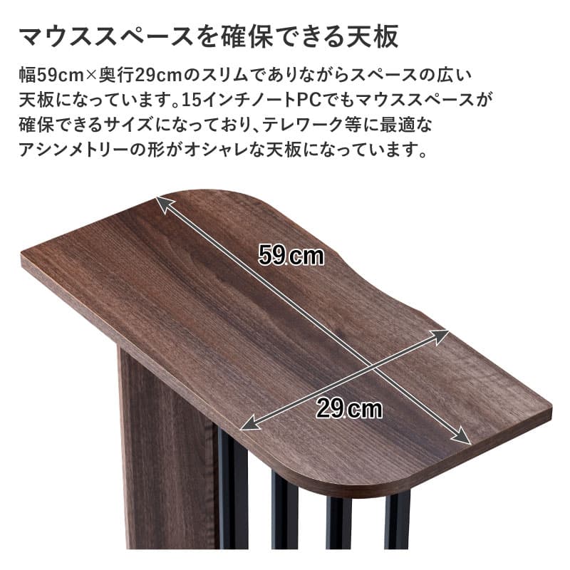 場所を取らないスリムタイプで15インチノートPCでもマウススペースが確保できるサイズです。