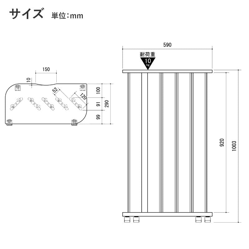 | 本体重量 | 14kg 耐荷重/10kg(天板) |