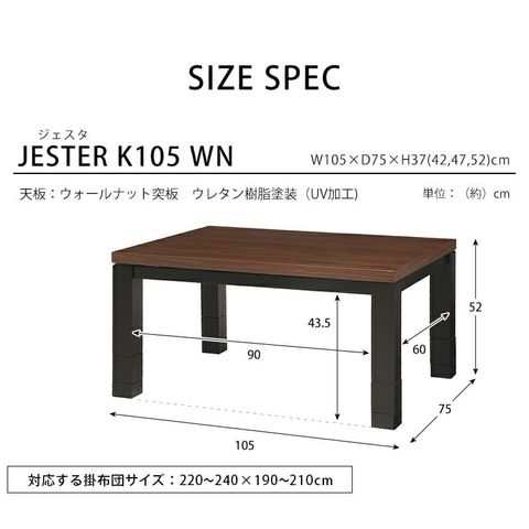 (約)幅105×奥行75×高さ37-42-47-52cm(4段階高さ調整)