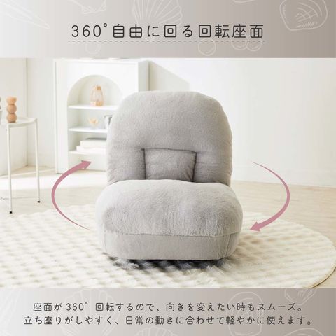 座椅子 グレー もこもこ ふわふわ 回転式 リクライニング 一人掛け Luff ルフ ASHEL AR
