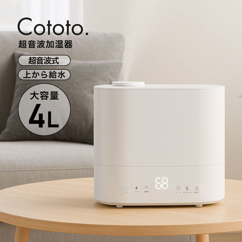 Cotto 超音波加湿器 4L 自動湿度調整 上部給水 除菌 大容量 卓上 超音波 上から給水 アロマ対応 小型 コンパクト 空焚き防止 タイマー付き 4リットル 4L 4.0L 4000ml 保湿 乾燥 花粉 ウィルス対策 オフィス 寝室 子