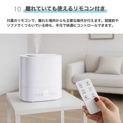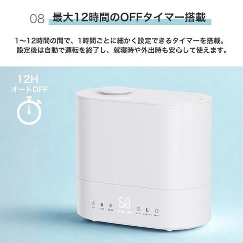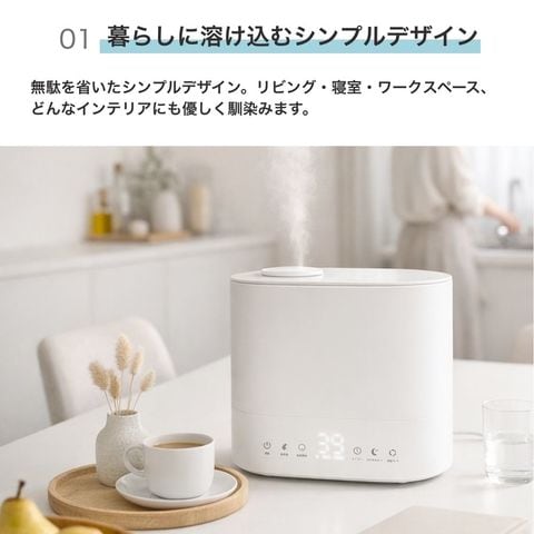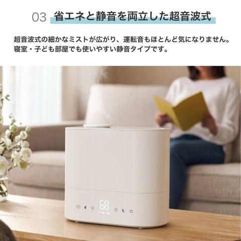 Cotto 超音波加湿器 4L 自動湿度調整 上部給水 除菌 大容量 卓上 超音波 上から給水 アロマ対応 小型 コンパクト 空焚き防止 タイマー付き 4リットル 4L 4.0L 4000ml 保湿 乾燥 花粉 ウィルス対策 オフィス 寝室 子供部屋 静音 省エネ
