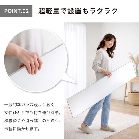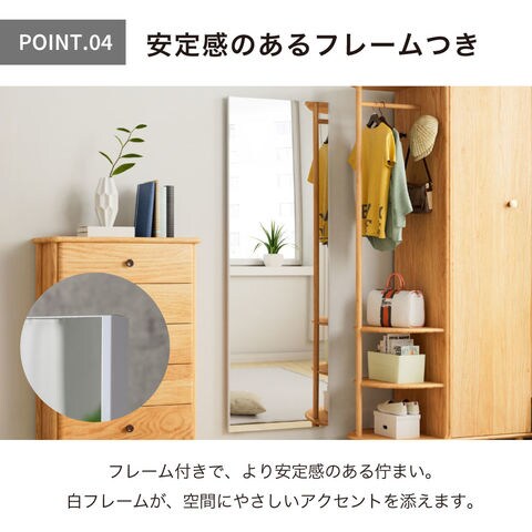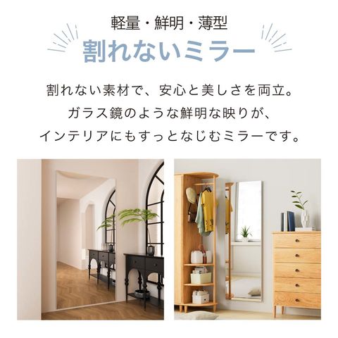 割れないミラー 壁掛け classic 白フレーム 30×150cm 超軽量 軽い 薄い 割れない 鏡 ミラー 姿見 全身 壁掛け 立掛け ガラス不使用 大型 子供 子ども 安全 ペット 歪まない