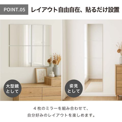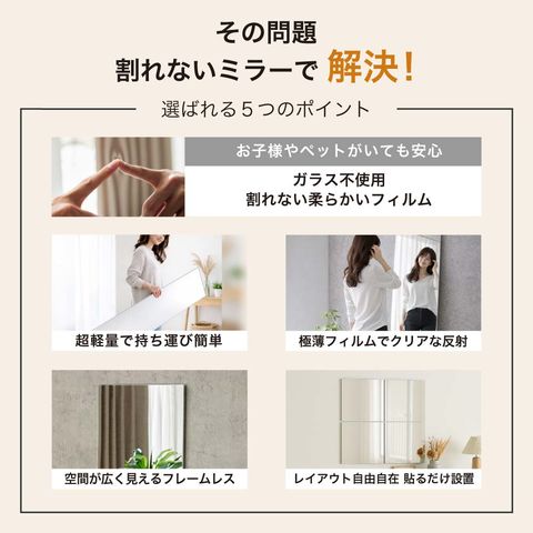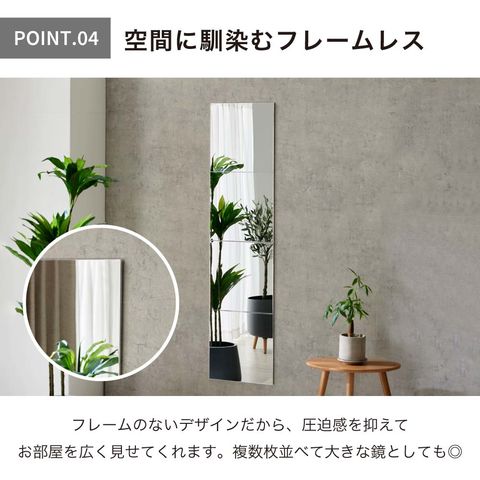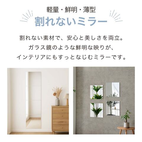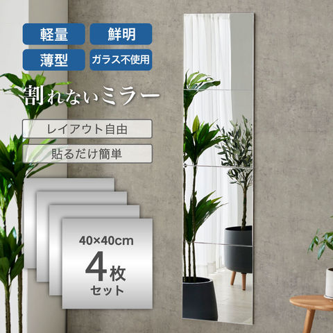 割れないミラー Air 4枚セット 40×40 フレーム無し 超軽量 軽い 薄い 割れない 鏡 ミラー 姿見 全身 壁掛け 立掛け ガラス不使用 貼るだけ 子供 子ども 安全 ペット 賃貸 玄関 寝室 歪まない フィルムミラー