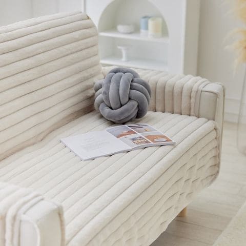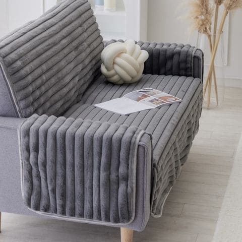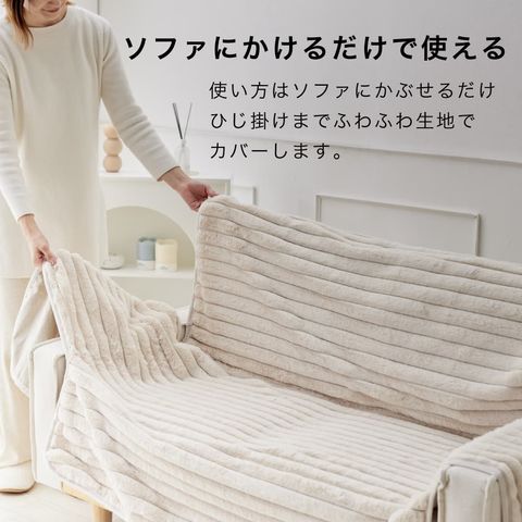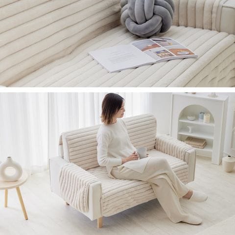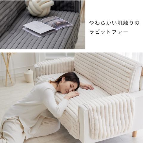 ASHEL ソファカバー 冬用 冬 3.5cm ボーダー 2人掛け ベージュ 肘付き もこもこ ふわとろ 洗える 洗濯可 おしゃれ 可愛い かけるだけ 暖かい 肌触り ふわふわ 高級感 ズレ防止 ずれない 滑り止め ソファーカバー 北欧 韓国インテリア