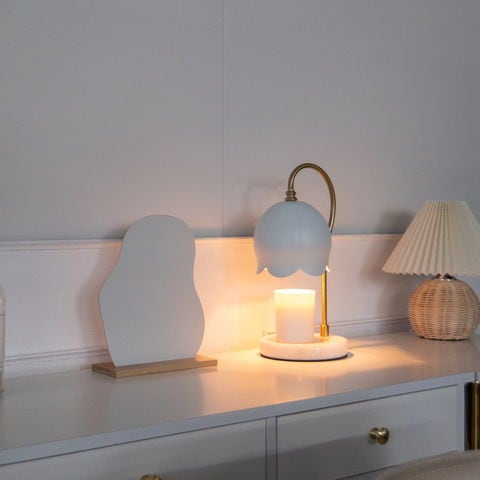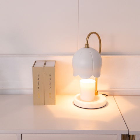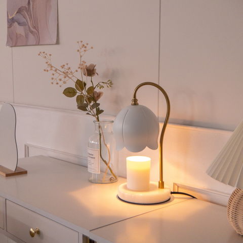 キャンドルウォーマー タイマー付き フラワー おしゃれ キャンドルランプ アロマキャンドル キャンドルライト インテリア 間接照明 照明 明るさ調節 大理石調 アロマウォーマー 調光 ホワイト 女性 プレゼント ギフト 誕生日 ASHEL