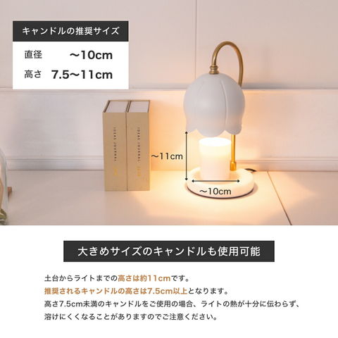 | 使用上の注意 | 商品使用時は、やけどを防ぐために電源やランプのシェード、キャンドルに触れないでください。 |