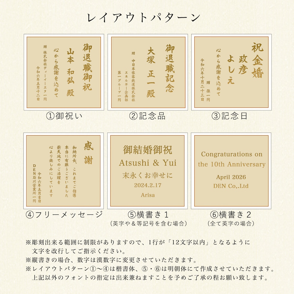 ※木の種類や節の有無により、レーザー印字の色の濃さに差が出る場合がございます。あらかじめご了承ください。