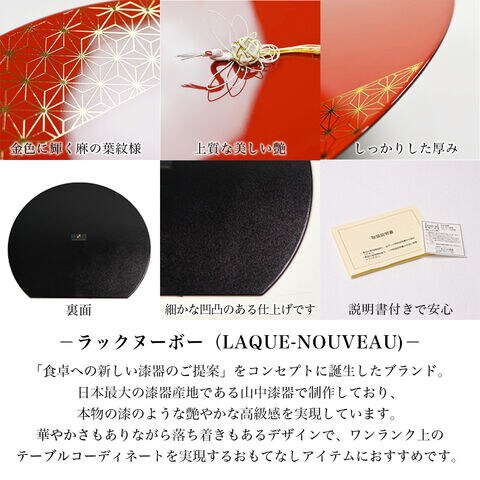 【山中漆器 ラックヌーボー】 半月膳・祝い箸 一膳セット プレースマット 麻の葉 レッド・ゴールドライン S