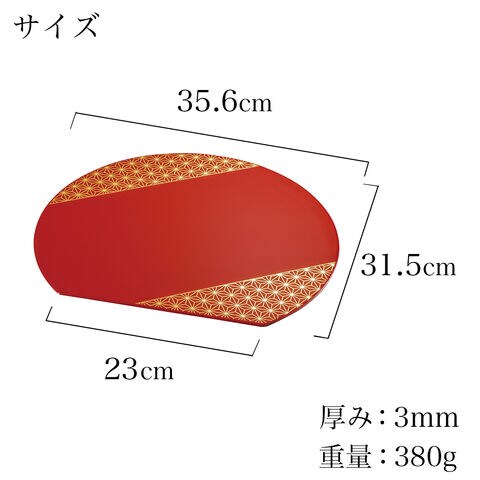 寸法:[半月プレースマット] 幅:35.6cm × 奥行:31.5cm × 高さ:0.3cm [祝い箸] 幅:4.5cm × 高さ:18cm 箸の長さ:24cm