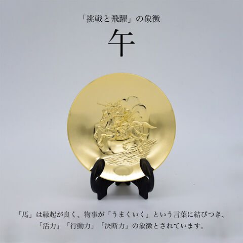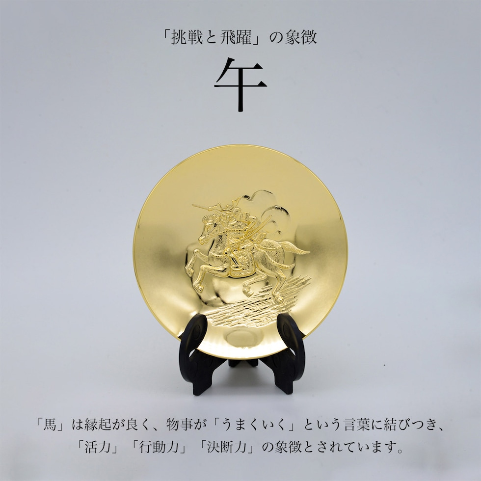干支金盃 純金メッキ 「午」 オリジナル招福木札付き ( 午 うま 馬 干支 金杯 ゴールド 飾り 十二支 2026年 開運 厄除け 縁起物 高岡銅器 結婚 出産 )