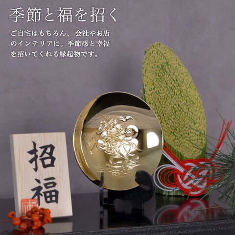 干支金盃と伝統本舗オリジナルの招福木札がセットになった縁起の良いアイテムです。 高岡銅器の職人が丁寧に仕上げた上質感に溢れる金盃を、リビングや玄関に飾りませんか。ご家庭はもちろん、会社やお店など、施設のインテリアにおすすめです。