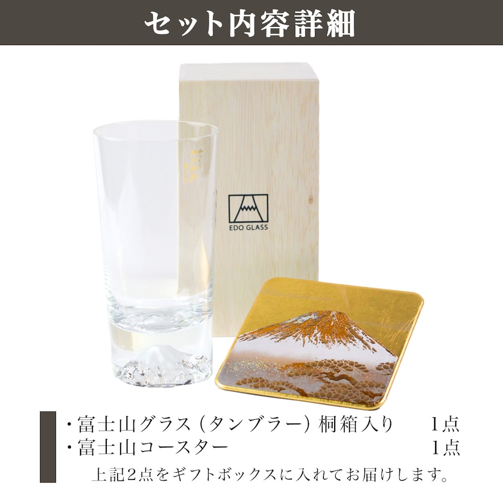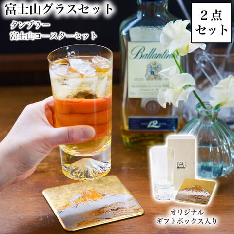 富士山グラスセット タンブラー 富士山コースター 2点セット ( 田島硝子 ビールグラス タンブラー 日本 記念品 人気 江戸硝子 結婚 出産 内祝い )