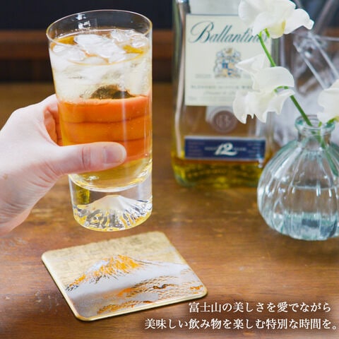 当店でも人気の高い、江戸硝子の富士山グラスシリーズ。熟練のガラス職人が手間暇かけて作り上げた江戸硝子はその緻密な技術によって、リアルな富士山の姿が再現されています。手にすれば、富士山の壮大さや美しさが伝わってきます。使い勝手の良いグラスとしても優れており、贈り物にも最適です。日本の伝統工芸品への興味をお持ちの方や、富士山を愛する方におすすめな心躍る逸品です。こちらはグラス1点・コースター1点の計2点セットで販売しております。