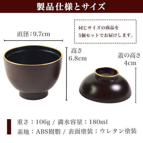 山中漆器 吸物椀 溜色 金ライン 5個セット ( ぜんざい お椀 お吸い物 味噌汁 お正月 山中漆器 結婚 出産 内祝い 引き出物 金婚式 誕生日プレゼント 還暦祝い )