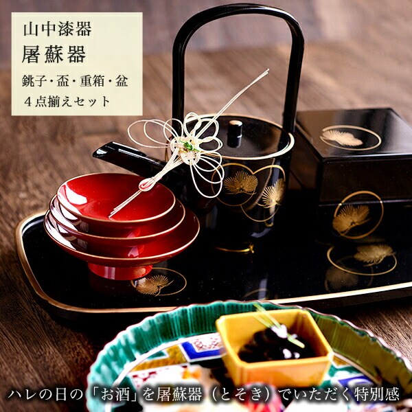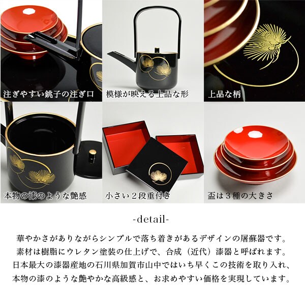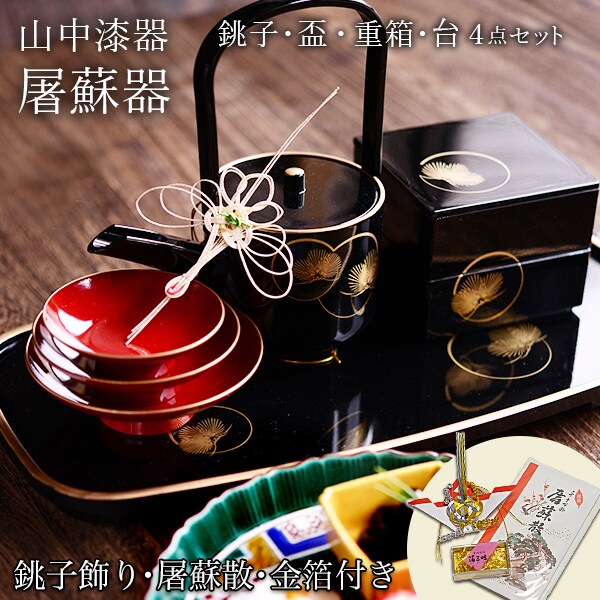 【山中漆器】 屠蘇器/とそき 耀松紋 屠蘇散・銚子飾り・食用金箔セット