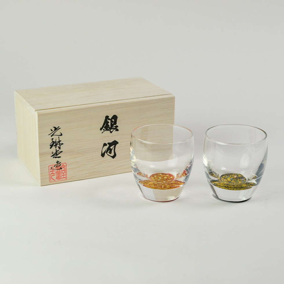 越前塗の伝統技術で、グラスの底面に繊細な螺鈿細工と華やかな金箔を贅沢にあしらった「銀河シリーズ」の冷酒グラス。木箱の蓋裏にレーザー彫刻が出来るプレゼントにぴったりのアイテム。まるで夜空にきらめく星々のような美しい輝きを放ち、日常の食卓にはもちろん、お祝いの席や大切な方との特別なひとときにもふさわしい逸品です。日本酒好きな方への贈り物としても最適。結婚祝いや誕生日、海外の方への日本のお土産などのギフトとして喜ばれること間違いありません。