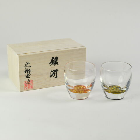 冷酒グラス ダルマ型 銀河 ペア 木箱入り 蓋裏レーザー名入れ彫刻料込み ( ぐいのみ 盃 酒器 猪口 日本酒 越前漆器 結婚 出産 内祝い 引き出物 )