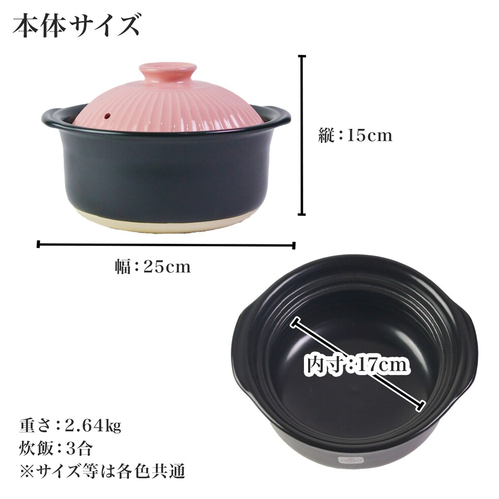 KIKKA ご飯鍋 選べるパステルカラー 3色 3合炊き ( ごはん鍋 ごはん釜 土鍋ご飯 炊飯土鍋 日本製 菊花 萬古焼 結婚 出産 内祝い 引き出物 )