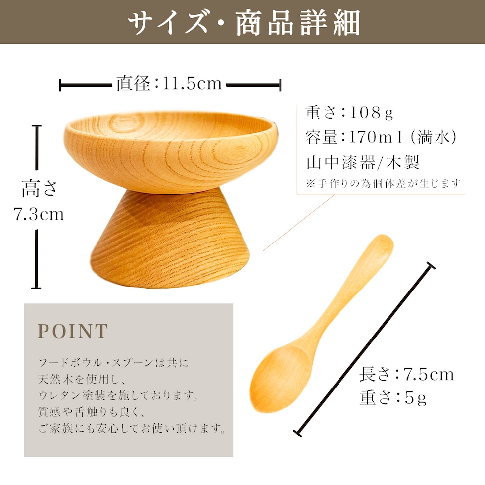 ペット用 木製フードボウル 白木塗 小 おやつスプーン付き ( 猫用 犬用 ネコ 猫 ペット用品 山中漆器 新築祝い 誕生日 プレゼント お祝い お返し )