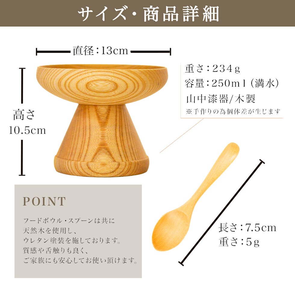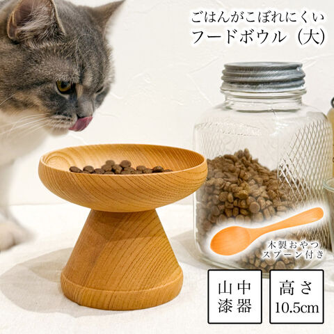 ペット用 木製フードボウル 白木塗 大 おやつスプーン付き ( 猫用 犬用 ネコ 猫 ペット用品 山中漆器 新築祝い 誕生日 プレゼント お祝い お返し )