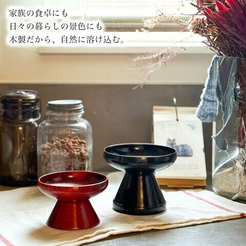漆器ならではの美しい木目や漆の色つやが魅力的なペット用フードボウルです。内側にそりをつけて、こぼれにくい形状で、食べやすく吐き戻しもしにくい高さに。サイズは小・大2種類。ご飯の量や種類、ご家族のサイズでお好みの物をお選びください。