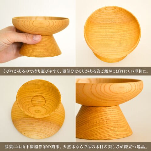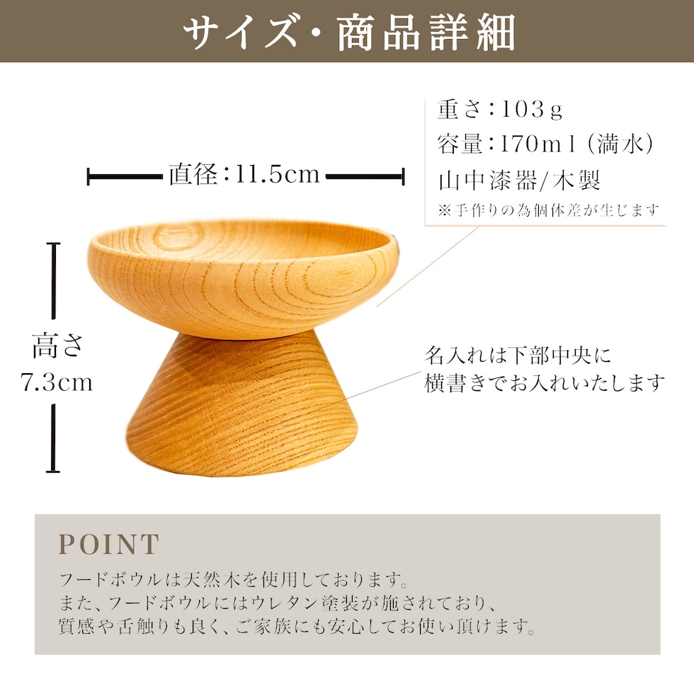 【山中漆器】 ペット用 木製フードボウル 白木塗 小 手書き名入れ付き