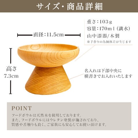 ペット用 木製フードボウル 白木塗 小 手書き名入れ付き ( 猫用 犬用 ネコ 猫 ペット用品 山中漆器 新築祝い 誕生日 プレゼント お祝い お返し お礼 令和 )