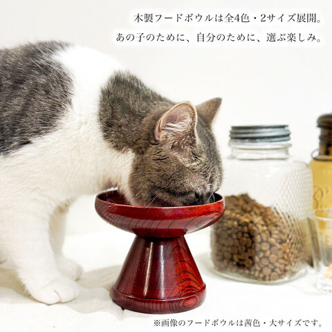 漆器ならではの美しい木目や漆の色つやが魅力的なペット用フードボウルです。内側にそりをつけて、こぼれにくい形状で、食べやすく吐き戻しもしにくい高さに。サイズは小・大2種類。ご飯の量や種類、ご家族のサイズでお好みの物をお選びください。本商品は手書き名入れサービス付きの商品です。購入ページの備考欄にお入れしたい名前をご記入してください。