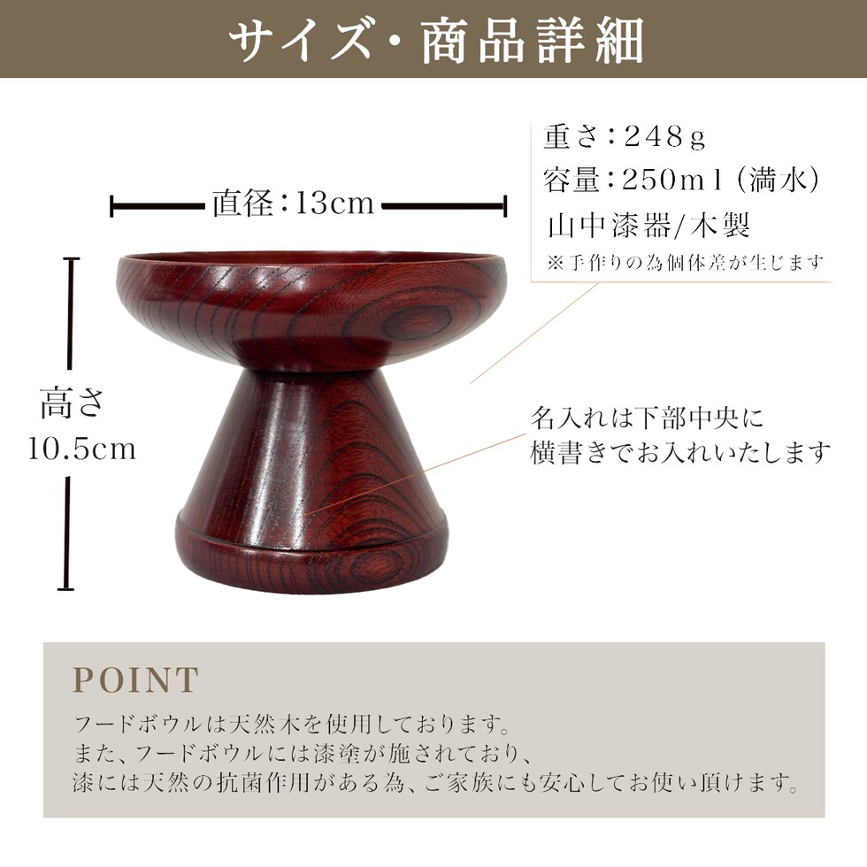 【山中漆器】 ペット用 木製フードボウル 茜すり 大 手書き名入れ付き
