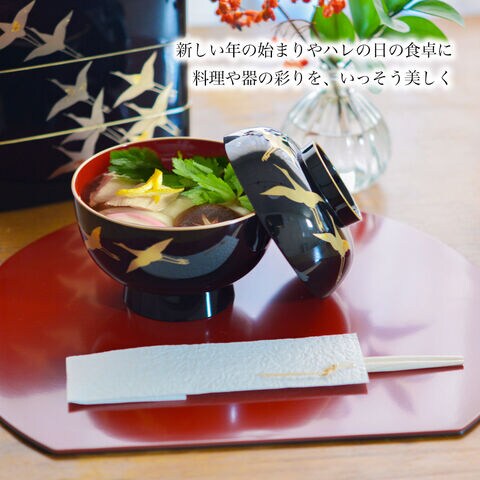 山中漆器のプレートと美濃和紙の箸袋入り祝箸のセットは、お正月やハレの日の食卓を華やかに彩る特別なアイテムです。食卓に上品なアクセントを加えます。祝箸は美濃和紙の箸袋に包まれ、特別な日のおもてなしにふさわしい一品です。もみ紙の柔らかな質感と金色の水引がアクセントとなりモダンかつ日本の美を感じさせてくれます。お正月や結婚祝い、誕生日など、大切な瞬間にふさわしいこのセットで、心温まるひとときを演出しませんか?