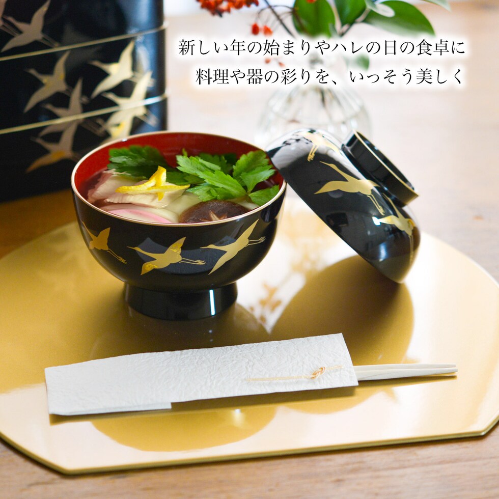 山中漆器のプレートと美濃和紙の箸袋入り祝箸のセットは、お正月やハレの日の食卓を華やかに彩る特別なアイテムです。食卓に上品なアクセントを加えます。祝箸は美濃和紙の箸袋に包まれ、特別な日のおもてなしにふさわしい一品です。もみ紙の柔らかな質感と金色の水引がアクセントとなりモダンかつ日本の美を感じさせてくれます。お正月や結婚祝い、誕生日など、大切な瞬間にふさわしいこのセットで、心温まるひとときを演出しませんか?