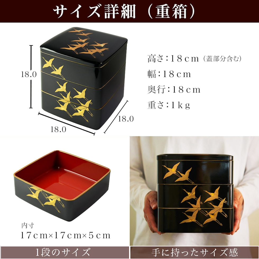 寸法:[重箱] 縦:18cm × 横:18cm × 高さ:18cm [雑煮椀] 直径:13.4cm × 高さ:12cm