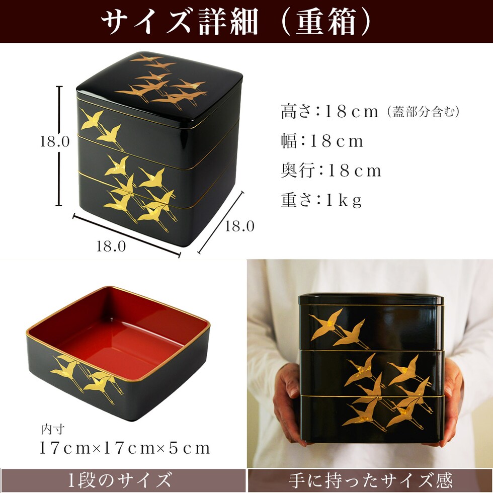 寸法:[重箱] 縦:18cm × 横:18cm × 高さ:18cm [雑煮椀] 直径:13.4cm × 高さ:12cm
