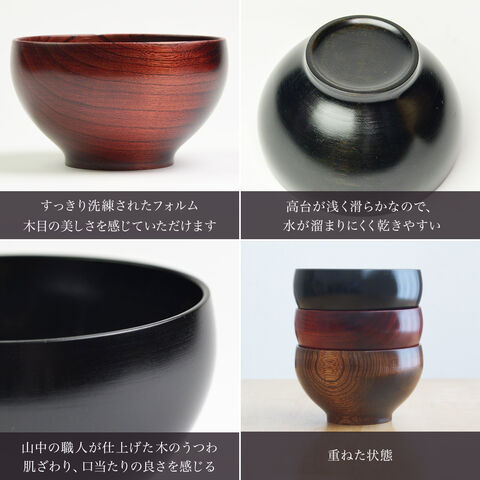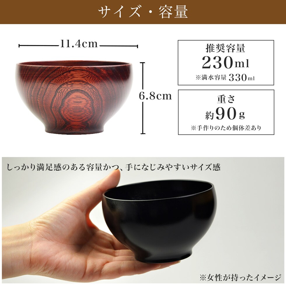木地の選定・削り・磨き・塗りすべての工程を日本国内で行った山中漆器のうつわでありながら、食洗機で洗える使いやすさにもこだわった木製汁椀2個セットです。温もりある木目と確かな品質は、食卓に彩りを添え、汁物からデザートまで幅広く活躍します。食洗機対応で普段の手入れも簡単。結婚祝いや記念日などの贈り物にも最適です。