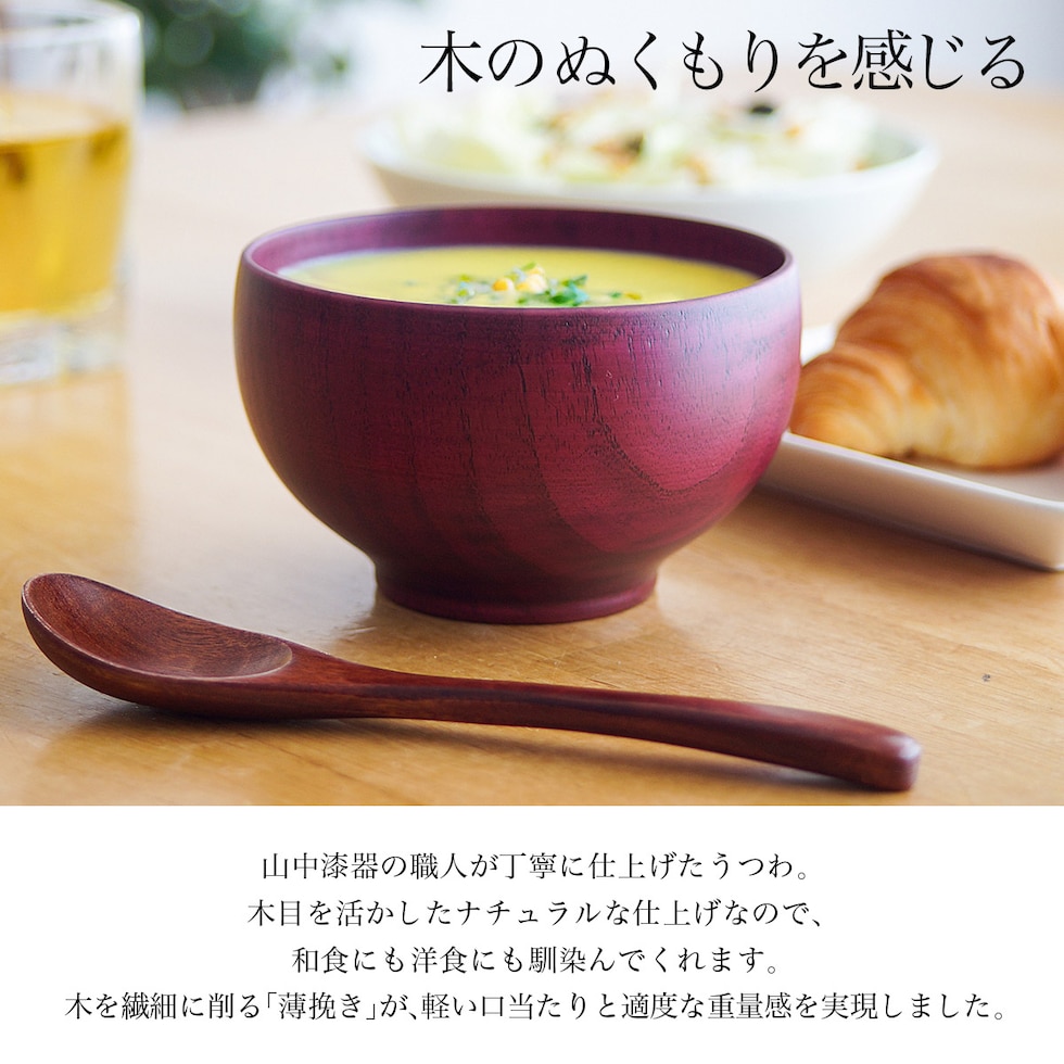 天然木と山中漆器の技が織りなす、食洗機対応の木製汁椀(マルチボウル)を赤と黒の2色セットでお届け。温もりある木目と確かな品質は、ご夫婦の食卓に彩りを添え、汁物からデザートまで幅広く活躍します。普段使いにも、お正月やハレの日にも使える上質なうつわ。手入れも簡単で、ご自宅用にも贈り物にもおすすめです。