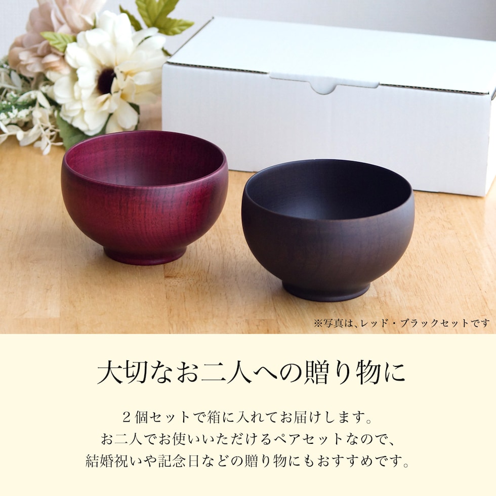 食洗機対応 木製マルチボウル レッド・ブラック 日本国内仕上げ 2色セット ( 結婚記念日 ボウル お椀 夫婦汁椀 吸い物椀 ギフトセット スープボウル )