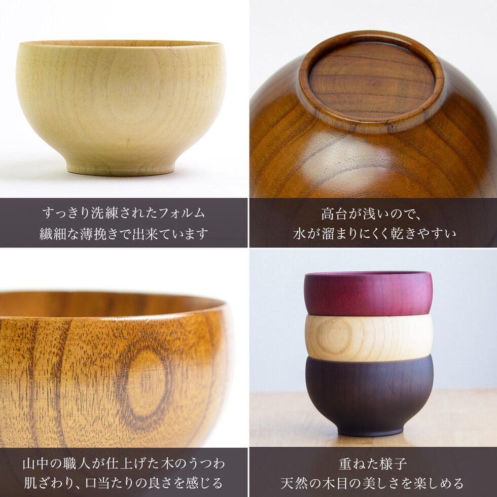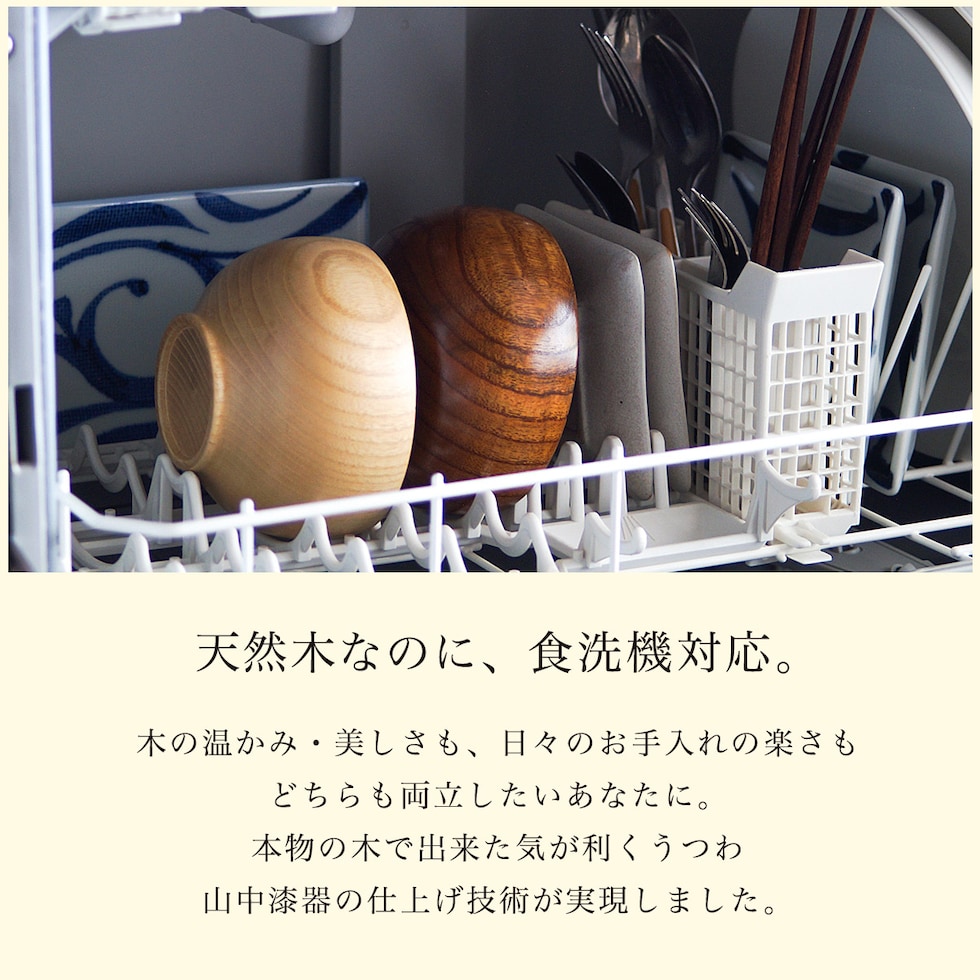 天然木と山中漆器の技が織りなす、食洗機対応の木製汁椀2色セット。拭漆(ブラウン)と木の色を活かしたナチュラル(プレーン)のセットです。温もりある木目と確かな品質は、ご夫婦の食卓に彩りを添え、汁物からデザートまで幅広く活躍します。普段使いにも、お正月やハレの日にも使える上質なうつわ。手入れも簡単で、ご自宅用にも贈り物にもおすすめです。
