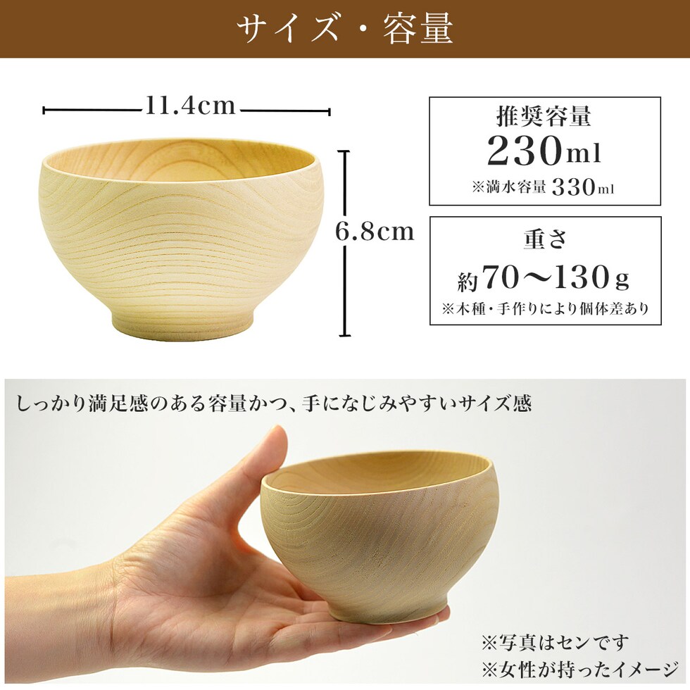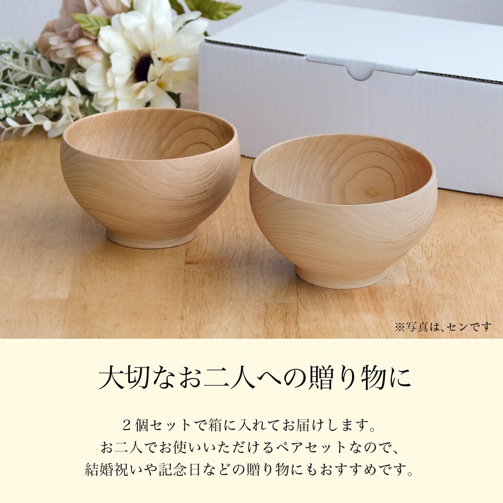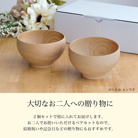 食洗機対応 木製くりぬき椀 日本の木・純国産 選べる5種の木 2個セット ペア箱入り ( 結婚記念日 ボウル お椀 夫婦汁椀 吸い物椀 ギフトセット スープボウル )