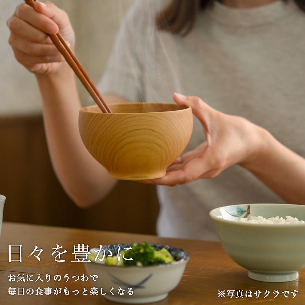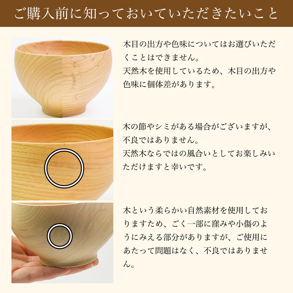 ※くりぬきのお椀ならではですが、経年の伸び縮みにより椀の円に若干の歪みが生じることがあります。天然木を使用した証としてお楽しみください。