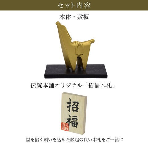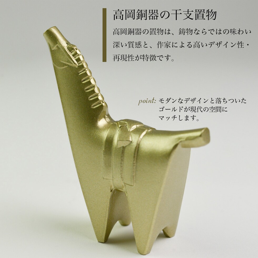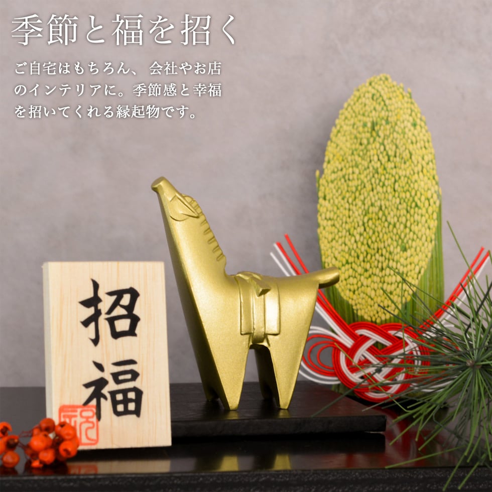 干支置物と伝統本舗オリジナルの招福木札がセットになった縁起の良いアイテムです。 高岡銅器の職人が手作りで丁寧に仕上げた上質感のある置物を、リビングや玄関に飾りませんか。ご家庭はもちろん、会社や施設のインテリアにおすすめです。