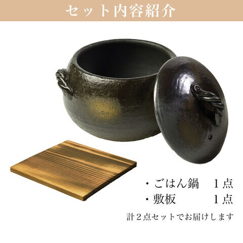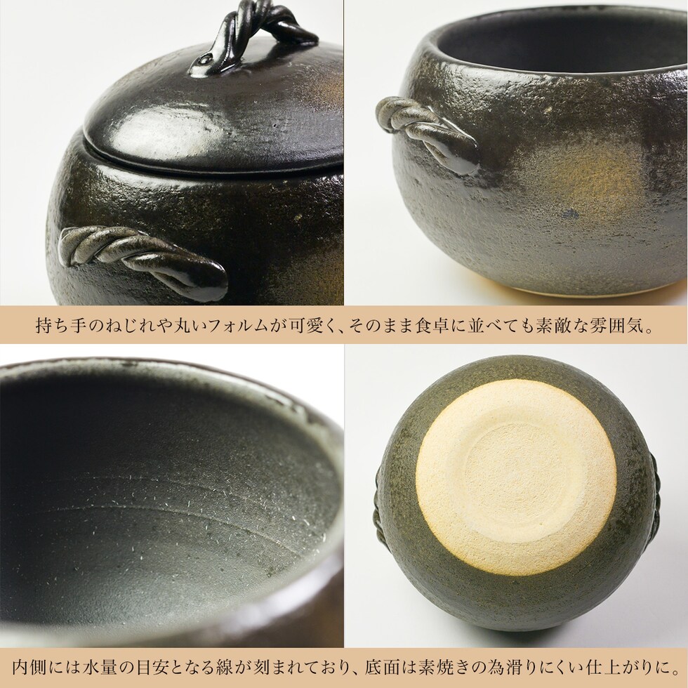 【萬古焼】 直火専用ご飯鍋 丸型 釉掛 レンジ対応 3合サイズ 鍋敷き付き